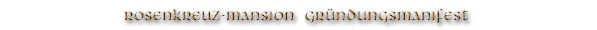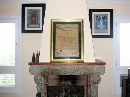Über dem Kamin im Büro des Imperators, umgeben von den Bildern „Klopft an und die Tür des Tempels wird euch aufgetan werden” und „Läuterung“, Originalwerken des berühmten esoterischen Malers Jan Semmel, befindet sich das Gründungsmanifest des ROSENKREUZ-ORDENs in seinem aktuellen Manifestationszyklus, unterzeichnet am 6. Januar 1988. |
